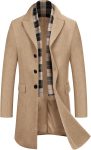 - MATERIAL: This casual and elegant men’s trench coat long jacket overcoat is made of high quality wool blend fabric. The super quality of wool material will keep you feeling well when you wear it, suit for spring, autumn and winter days