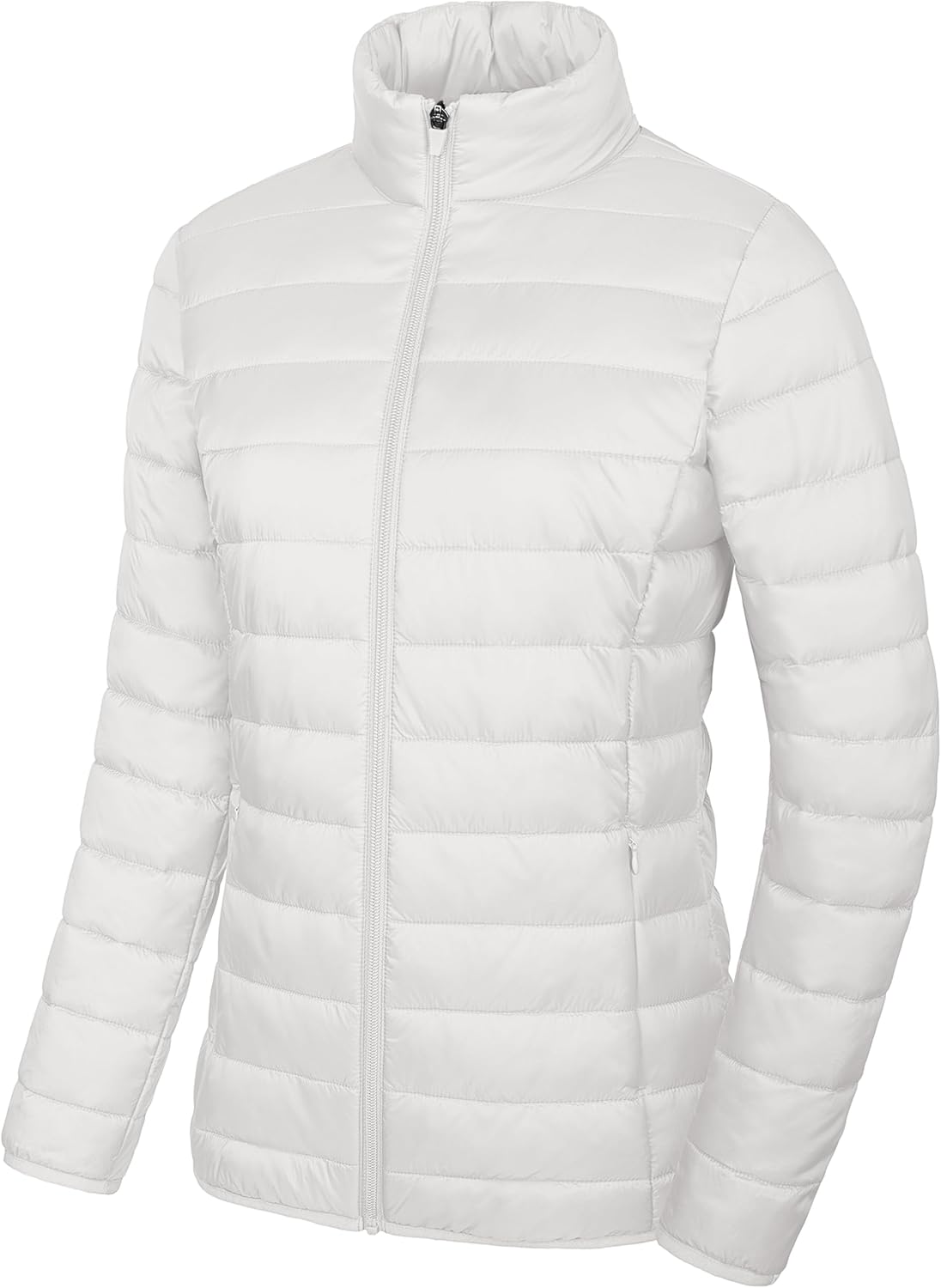 Women’s Puffer Jacket Lightweight Quilted Padded 4 Pockets Zip-up Stand-collar Winter Fleece Coat