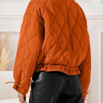 - Feature: Stand Collar, Two Side Pockets, Drawstring Hem, Drop Shoulder, Fully Lined, Solid Color, Zip Front Fastening, Long Sleeve with Elastic Cuffs, Boyfriend Style, Loose Fit Quilted Jacket
